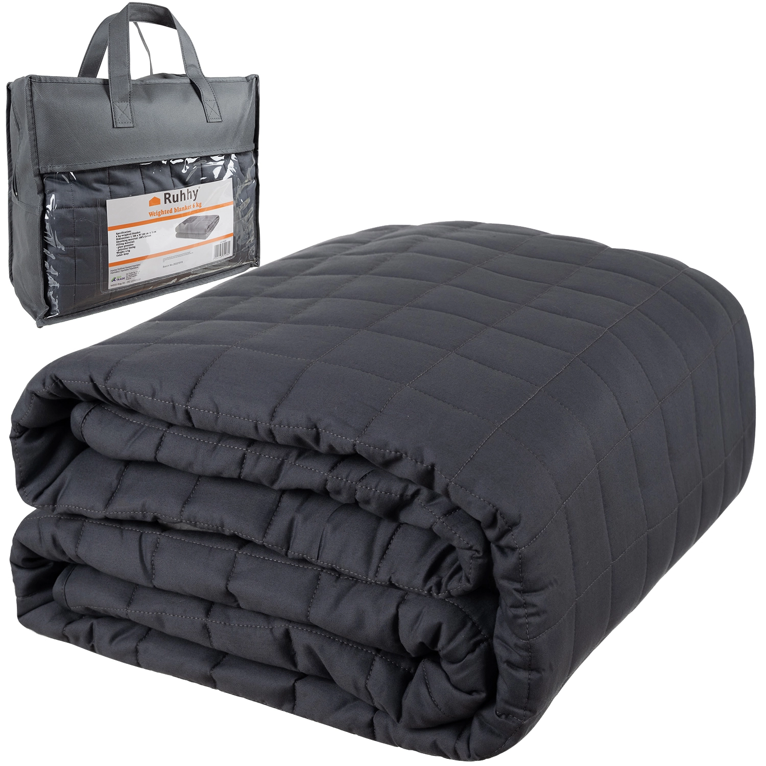 - SPECYFIKACJA - kolor: szary; wymiar: 150x200; materiał: poszycie - bawełna, wypełnienie - kuleczki szklane + włókno PP + pokrowiec włóknina + PVCe; waga wypełnienia: 6 kg; waga: 6,4 kg; waga w opakowaniu: 6,412 kg.