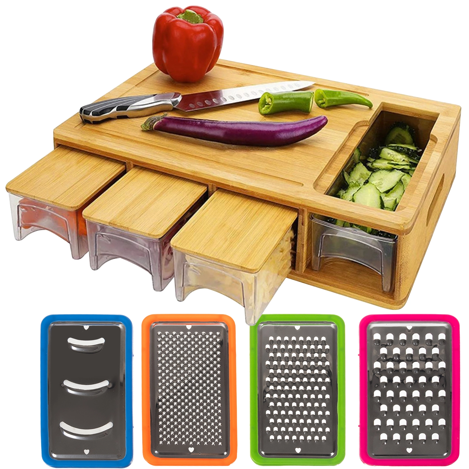 DESKA DO KROJENIA Z 4 POJEMNIKAMI I 4 TARKAMI BAMBUS