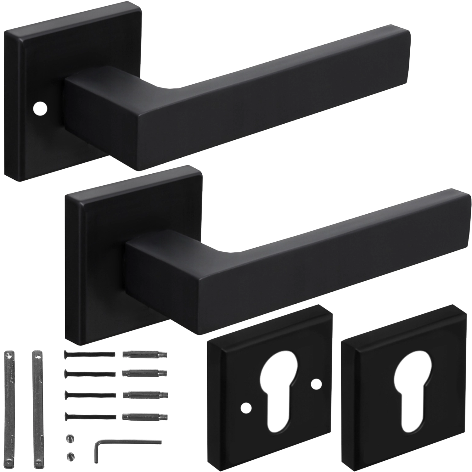 Klamka do Drzwi Czarna Mat Drzwiowa Uchwyt Rozeta na Zamek Klucz Komplet RUHHY