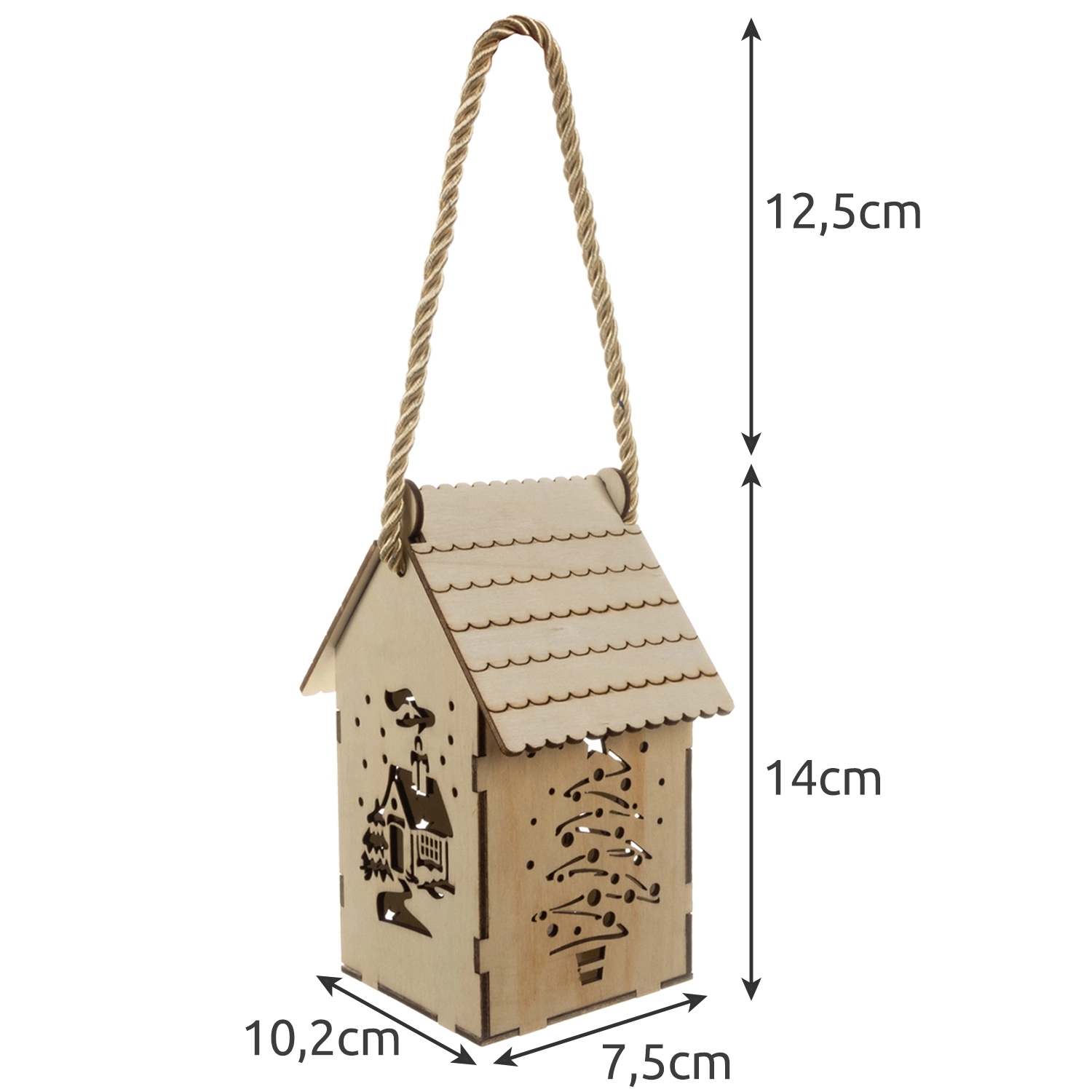 - SPECYFIKACJA - kolor: brązowy; materiał drewno, sznurek, plastik; zasilany bateryjnie: tak LR 1130 ( baterie w zestawie); długość sznurka 12,5 cm; wymiary lampionu: 14 x 7,5 x 10,2 cm; waga: 57 g; waga w opakowaniu: 97 g.