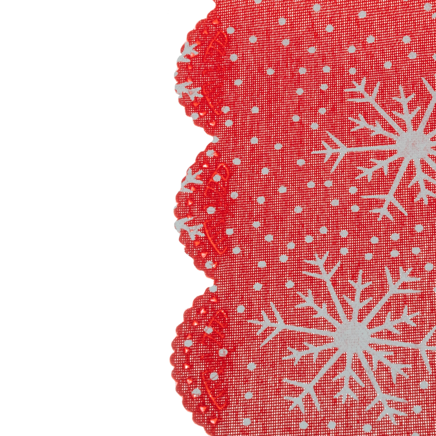 BARDZO DŁUGI BIEŻNIK ŚWIĄTECZNY NA STÓŁ CZERWONY W BIAŁE ŚNIEŻYNKI 220 x 35 cm