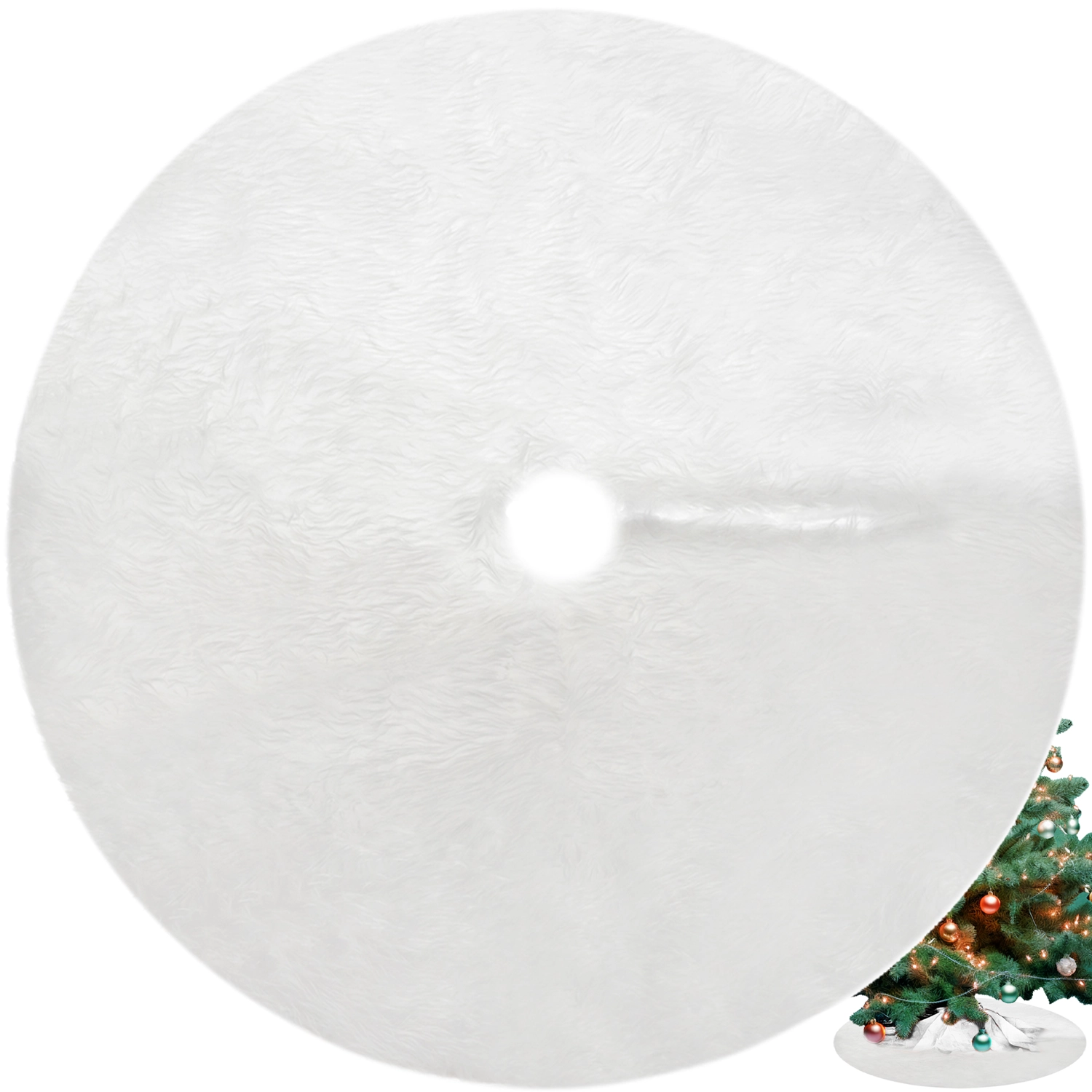 Dywanik pod Choinkę Mata Futerko Biały Dywan 90 cm Duży na Prezenty Okrągły RUHHY