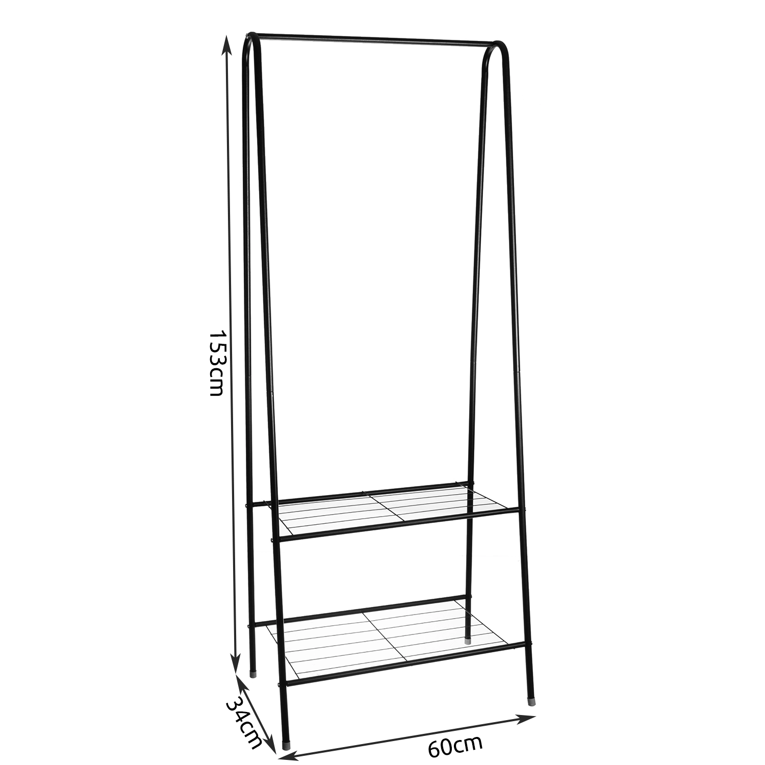 - SPECYFIKACJA – materiał: żelazo, pozostałe: PP; średnica rury: 16 mm; dwie półki na buty; wymiary: 153 x 60 x 34 cm; waga: 1,9 kg;waga w opakowaniu: 2,3 kg.