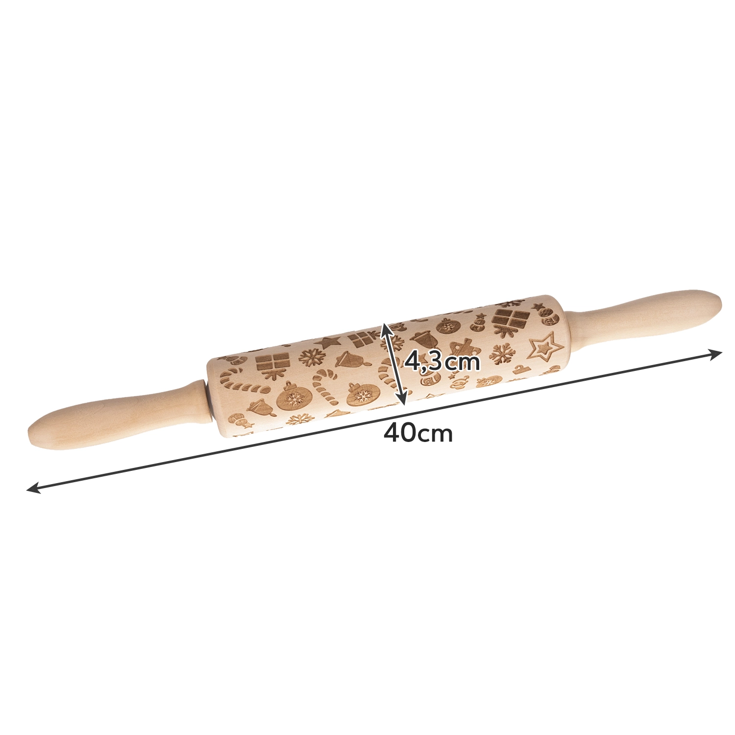 - DOSKONAŁA JAKOŚĆ - wałek wykonany jest z wysokiej jakości wytrzymałego, grawerowanego drewna, co gwarantuje jego trwałość i łatwość użycia. Jest ozdobiony różnymi motywami bożonarodzeniowymi – bałwanami, reniferami, bombkami, prezentami, choinkami itp. Wygodne, drewniany uchwyty na jego końcach, pozwalają na pewny chwyt i płynny ruch. Mocny grawer zapewni doskonałą widoczność wzoru.