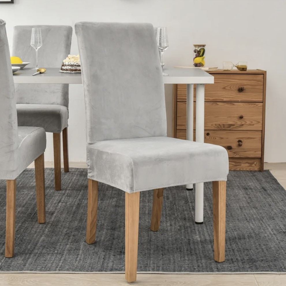 Pokrowiec na Krzesło Elastyczny Welur Szary Uniwersalny Jasny Welurowy RUHHY