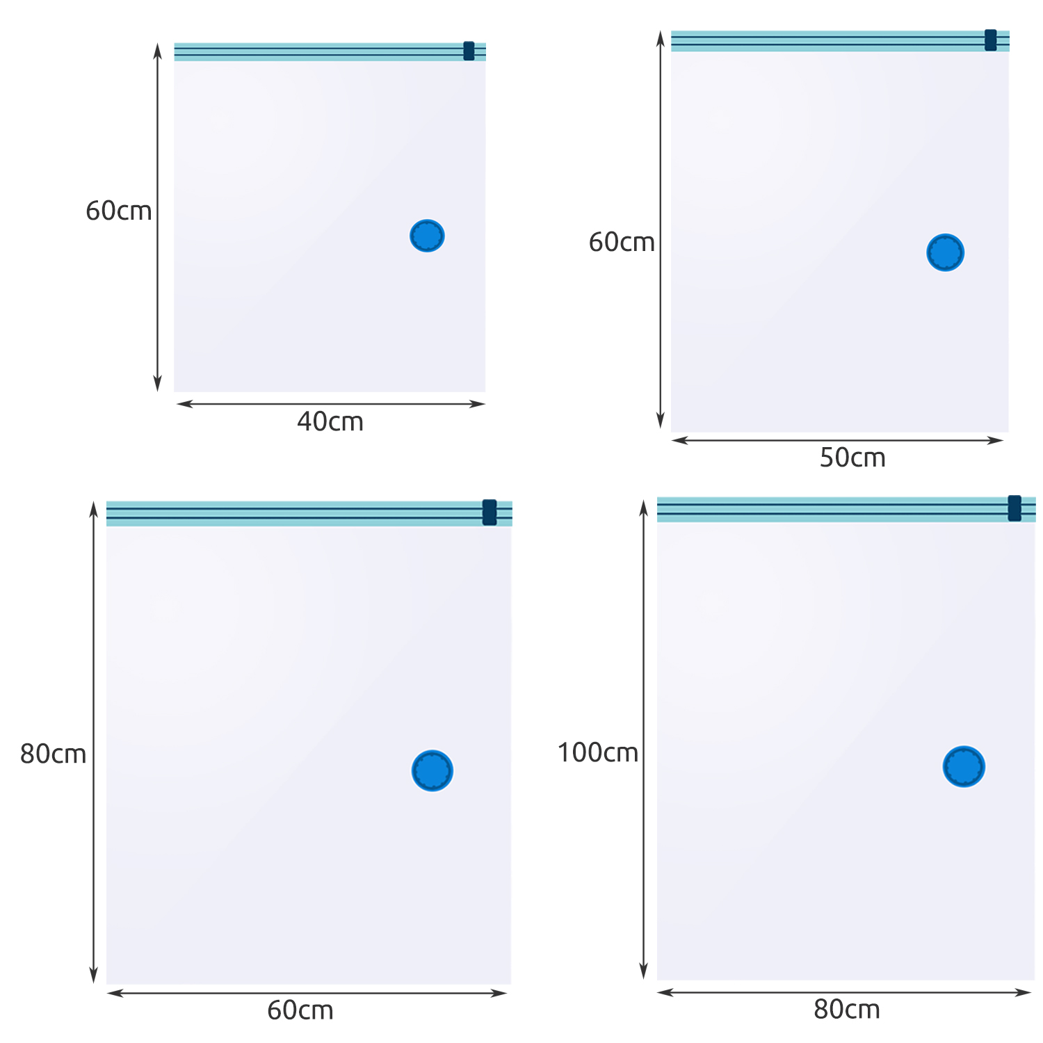 - SPECYFIKACJA – materiał: PA, pozostałe: HDPE + silikon; kolor: przeźroczysty / niebieski; wymiary:(szer/dł) 40x60 – 4 szt; (szer/dł) 50x60 – 3 szt; (szer/dł) 60x800 - 2 szt; (szer/dł) 80x100 - 1 szt; waga: 0,673 kg; waga w opakowaniu: 0,778 kg.