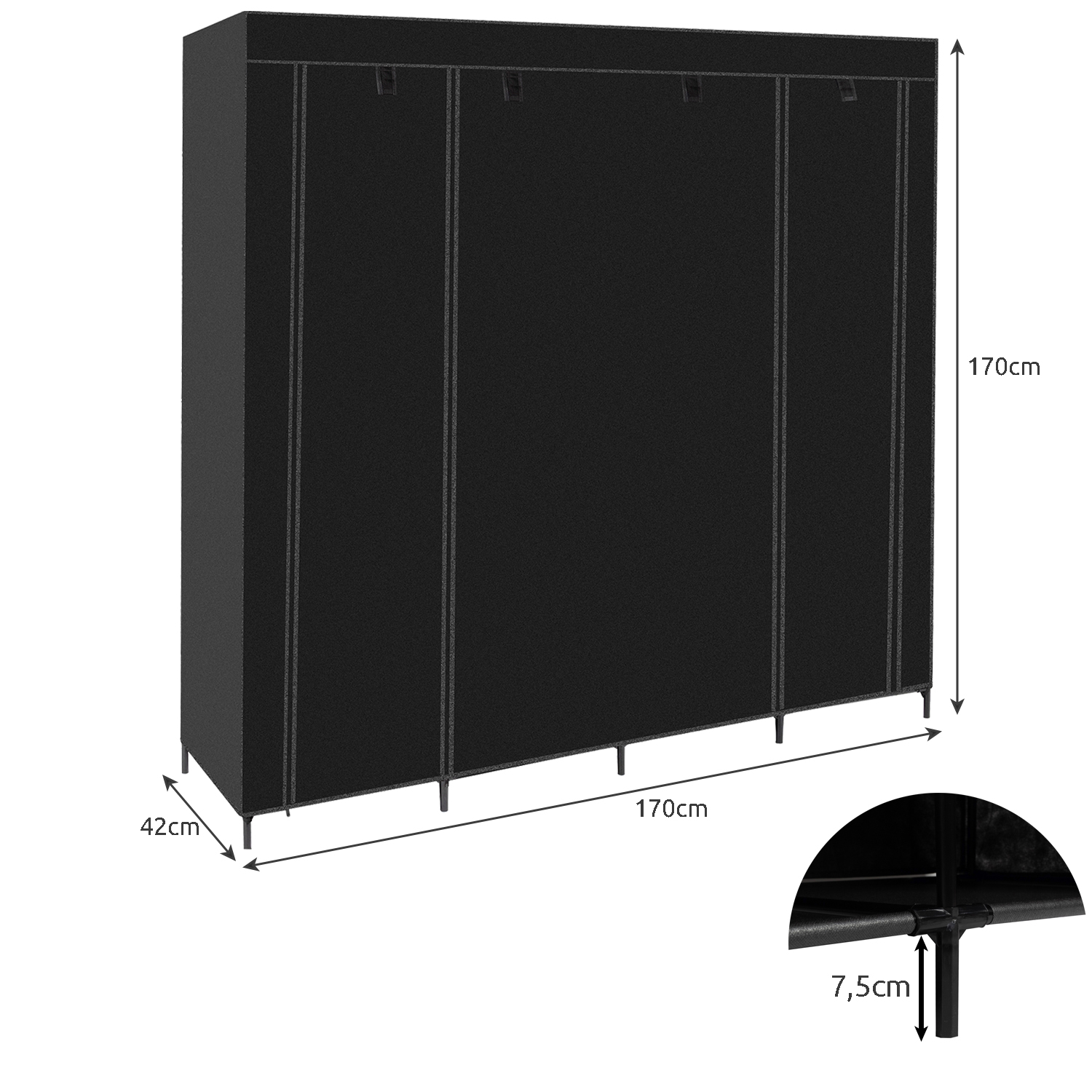 ✔️ ŁATWOŚĆ MONTAŻU – poszczególne elementy szafy są bardzo łatwe do złożenia i demontażu. Nie wymagają skomplikowanych narzędzi ani umiejętności, co oznacza, że można ją szybko i łatwo zainstalować w dowolnym pomieszczeniu. Wystarczy połączyć łączniki z rurkami oraz nałożyć włókninę na przygotowany stelaż. Dodatkowo do kompletu dodajemy zestaw montażowy do ściany w postaci specjalnych uchwytów i wkrętów. Szafę można przymocować do ściany, co zapobiega jej przewróceniu, szczególnie w przypadku dużego obciążenia lub nierównej powierzchni podłogi