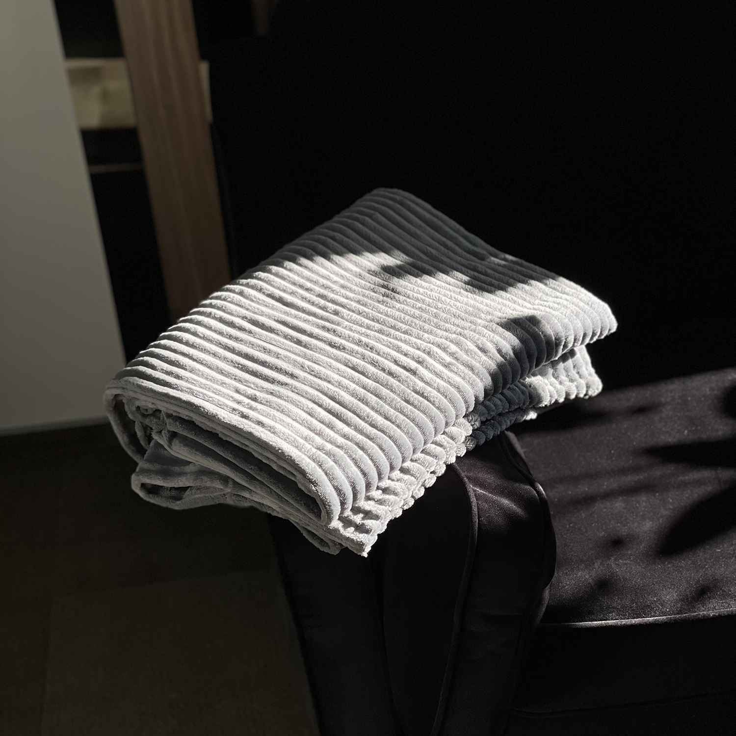 ✔️ szwy w szarym kolorze - zapewniają elegancki i spójny wygląd z kocem, podkreślając jednocześnie staranność wykonania oraz wysoką jakość produktu