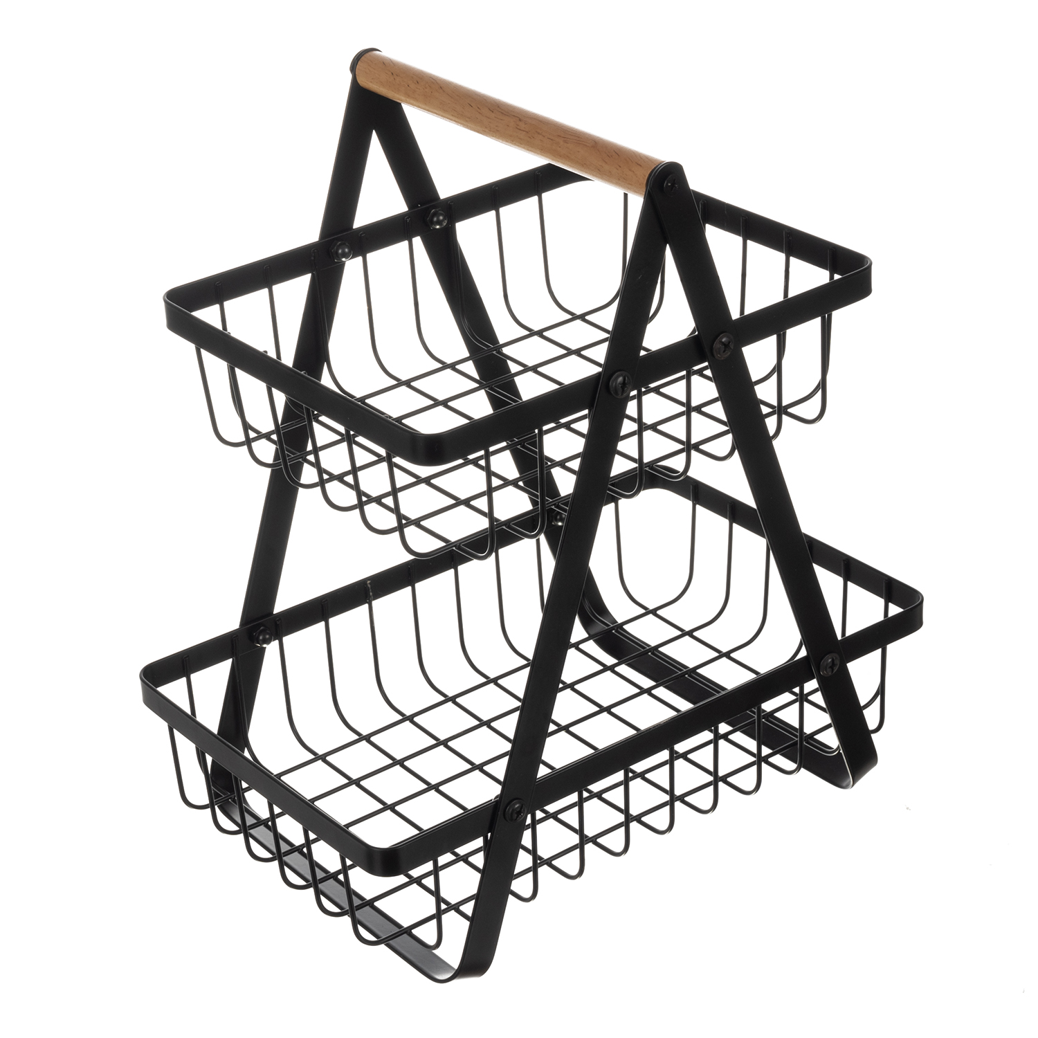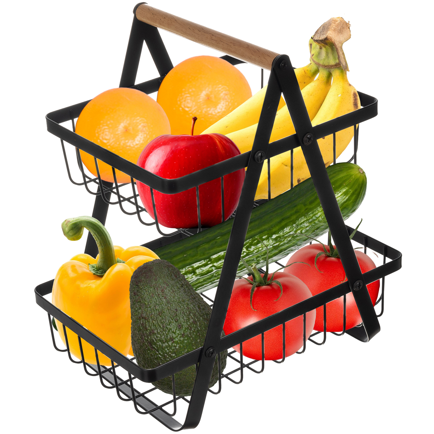 Kosz na owoce 2-piętrowy, czarny metalowy koszyk na warzywa do kuchni, styl loft!