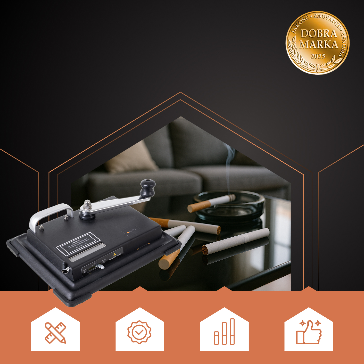 Maszynka do robienia papierosów polskiej marki Ruhhy – z oznaczeniem „Dobra Marka”