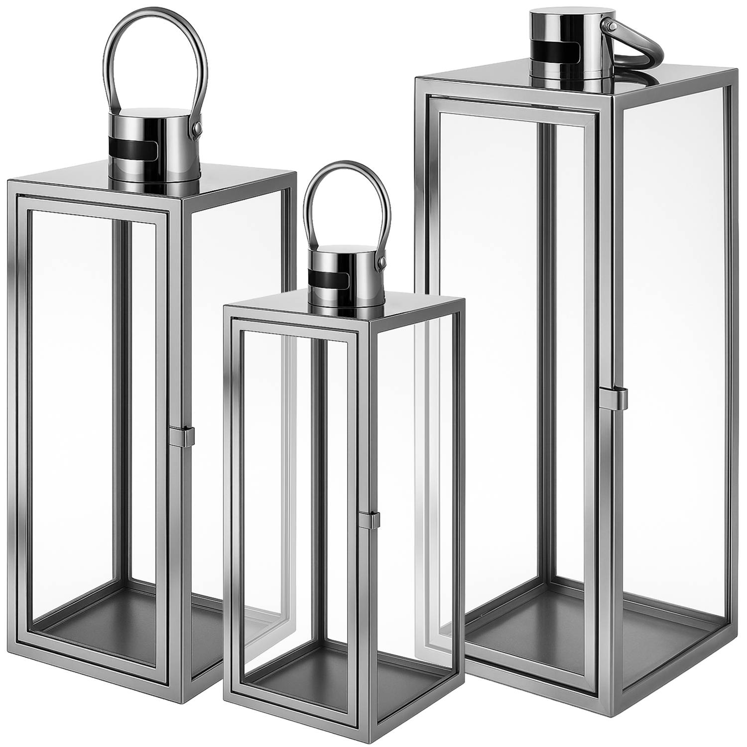 Lampion szklany duży srebrny latarnia lampa RUHHY zestaw 3 lampionów 63 49 38 cm do świec i dekoracji
