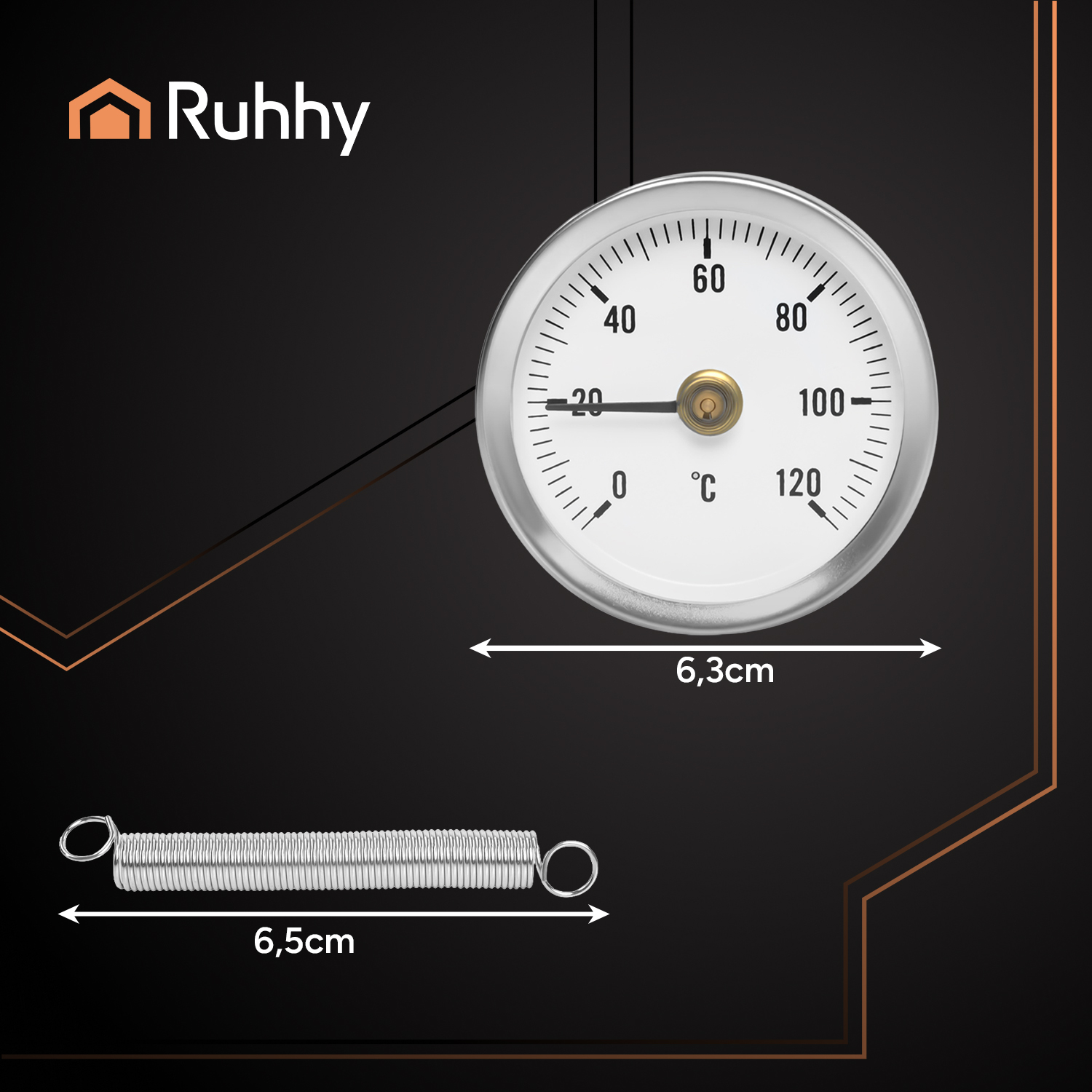 ✴️ Termometr tarczowy RUHHY to połączenie prostoty, precyzji i funkcjonalności. Wyraźna, czytelna tarcza umożliwia szybki odczyt temperatury w zakresie od 0 do 120 °C, a solidna konstrukcja z wysokiej jakości materiałów gwarantuje niezawodność przez długie lata. Dzięki sprężynce montażowej urządzenie można łatwo przymocować do rur, co czyni je niezastąpionym narzędziem w instalacjach grzewczych, przemysłowych i domowych.