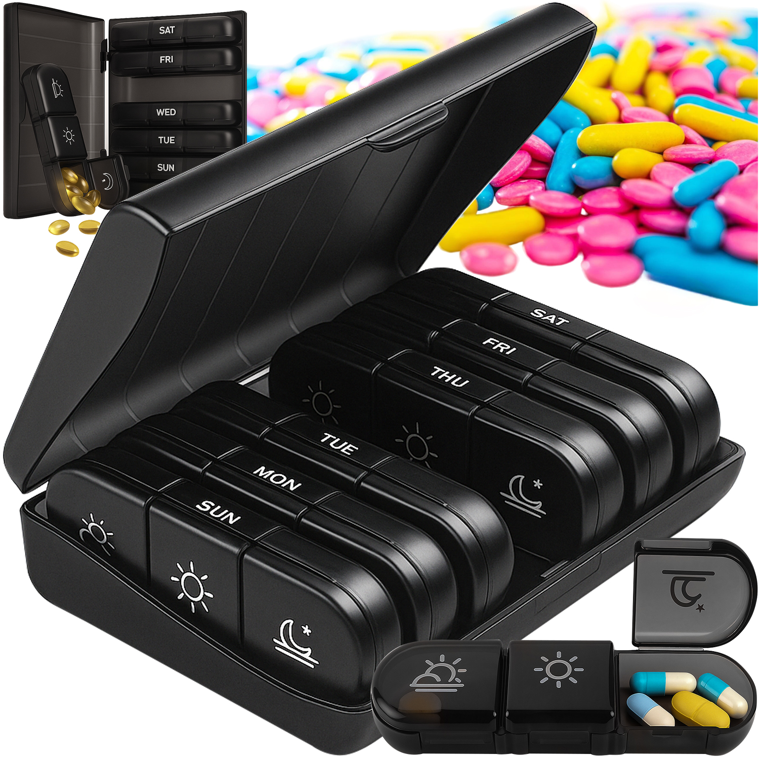 Pojemnik na leki, organizer na tabletki, pudełko kasetka RUHHY na 7 dni i 3 pory dnia – porządek i wygoda każdego dnia