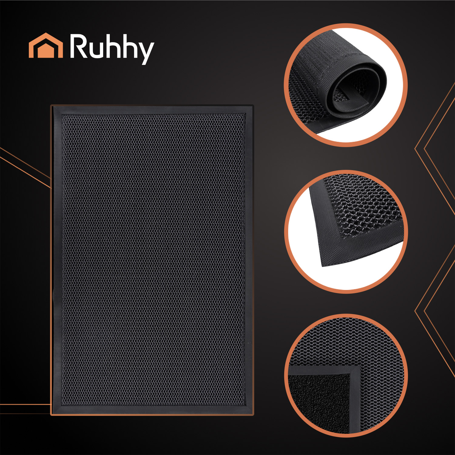 Wycieraczka pod drzwi, mata wejściowa zewnętrzna, mocna siatka 3D 60x90cm RUHHY gumowa antypoślizowa – technologia czystości, która zaczyna się już na progu!