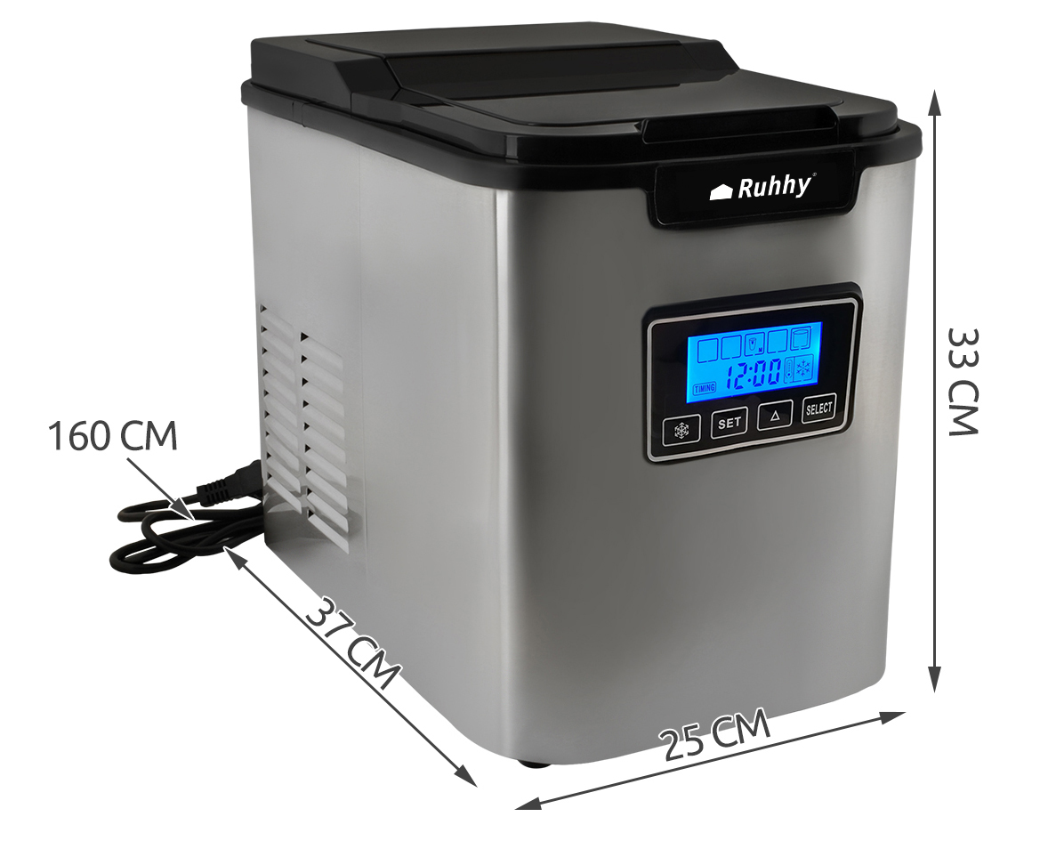 Kostkarka jest urządzeniem o bardzo wysokiej wydajności, umożliwia przygotowanie chłodnych napojów na przyjęciu, w biurze, wszędzie, gdzie najdzie Cię na to ochota. Doskonała do mrożonej kawy! Jest bardzo łatwa w obsłudze. Nie potrzebujesz bezpośredniego podłączenia do bieżącej wody. Wystarczy wlać wodę do zbiornika, wybrać wielkość kostek lodu i już po chwili są one gotowe. Na pokrywie jest okienko podglądu umożliwiające kontrolę pracy maszyny bez przerywania pracy urządzenia. Na spodzie kostkarki znajdują się antypoślizgowe stopki, dzięki czemu jest stabilna i nie ma ryzyka uszkodzenia. Za produkcję lodu w kostkarce odpowiada sprężarka pracująca z mocą 120W, co pozwala na wyprodukowanie aż 12kg lodu na dobę. Pierwsza porcja lodu (9 kostek) jest gotowa już od 9 do 13 minut od uruchomienia maszyny, w zależności od wybranego rozmiaru.